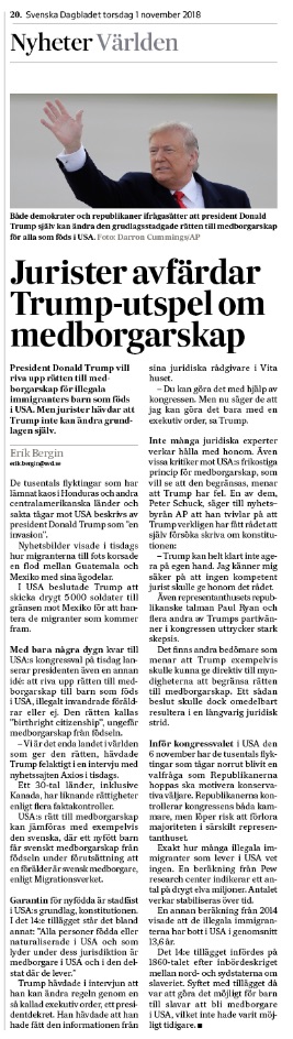 Jag skriver i SvD om president Donald Trumps förslag att slopa den konstitutionella rätten för barn till illegala immigranter att få amerikanskt medborgarskap om de är födda i USA.