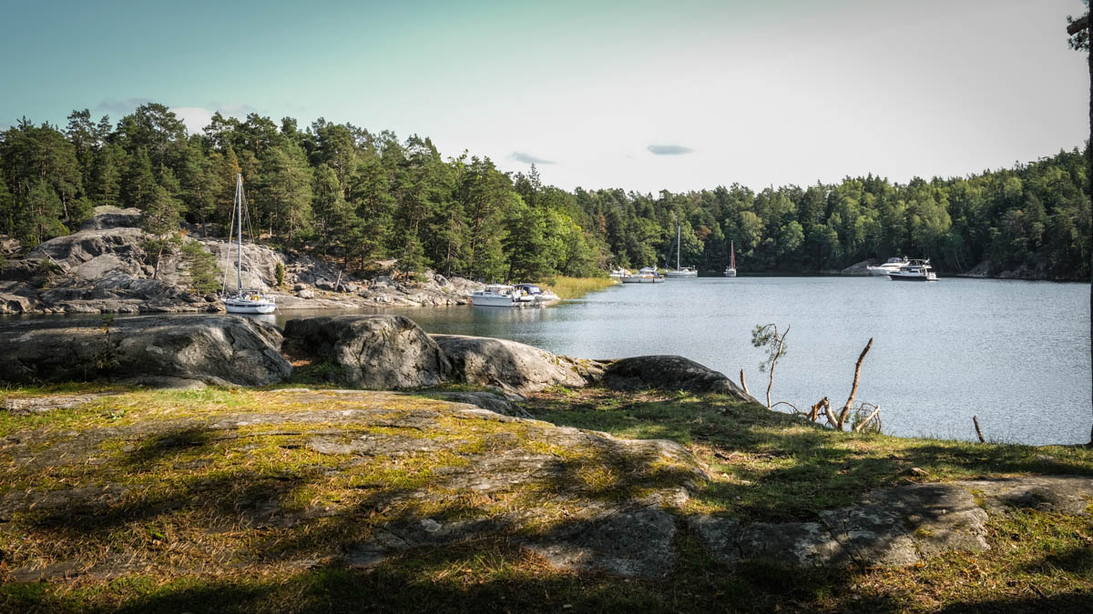 I slutet av augusti lägger jag till i vikens norra del, precis vid en grundklack om babord som är markerad i sjökortet. Klipporna runt Napoleonviken är inget att skriva hem om direkt. De är ofta ojämna, kantiga och drar iväg uppåt några få meter från sjökanten så att det är svårt att hitta en jämn plats så stor att det går att placera en grill och två stolar där.