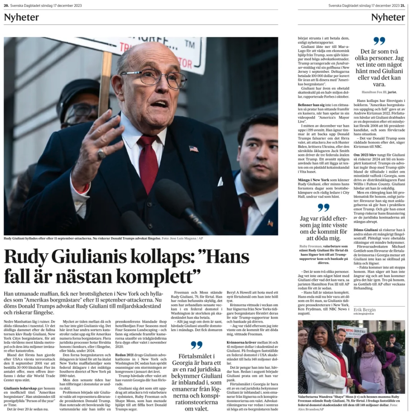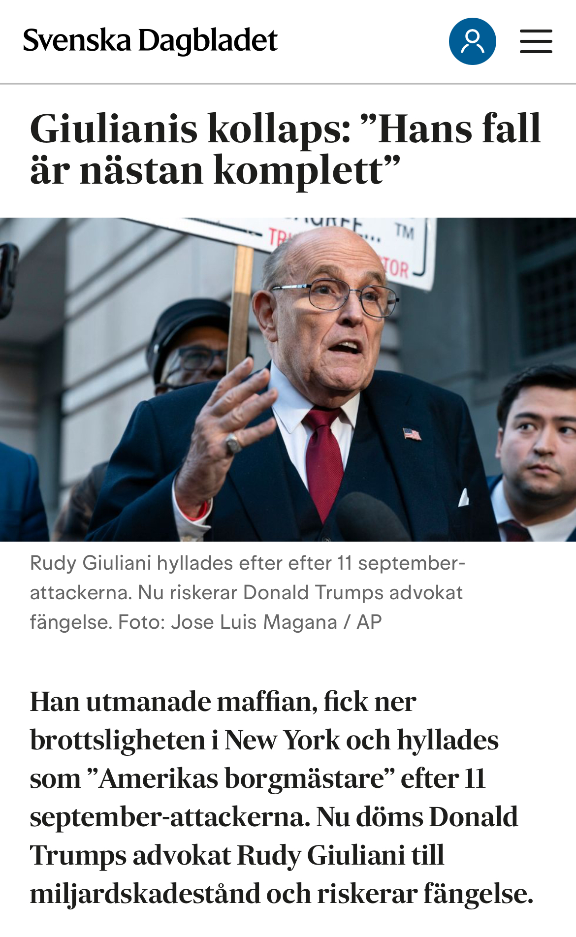 Nu är Giuliani, 79, dömd till miljardskadestånd för förtal, nära personlig konkurs och under åtal för valfusk i Georgia, i ett mål som om han döms kan ge många år i fängelse.
