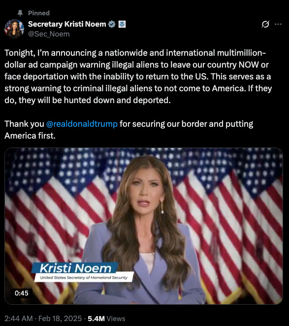 Liksom Kennedy verkar Kristi Noem, Trumps chef för Department of Homeland Security (DHS), inte veta vad hon pratar om. Det är hennes departement som verkställer utvisningar av illegala immigranter, via gräns- och immigrationsmyndigheten Ice.