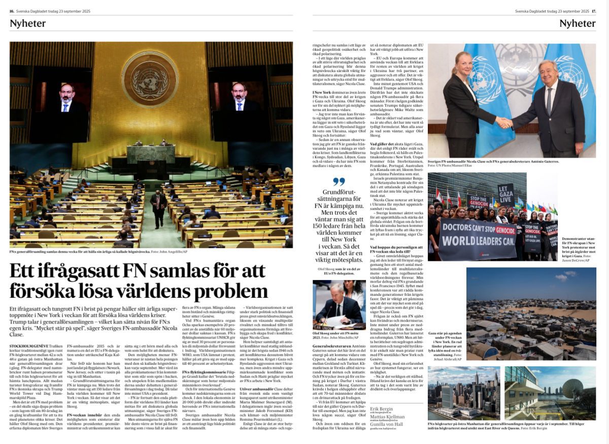 Jag skriver ihop med ett par kollegor om vad som väntar vid årets FN-vecka i New York.